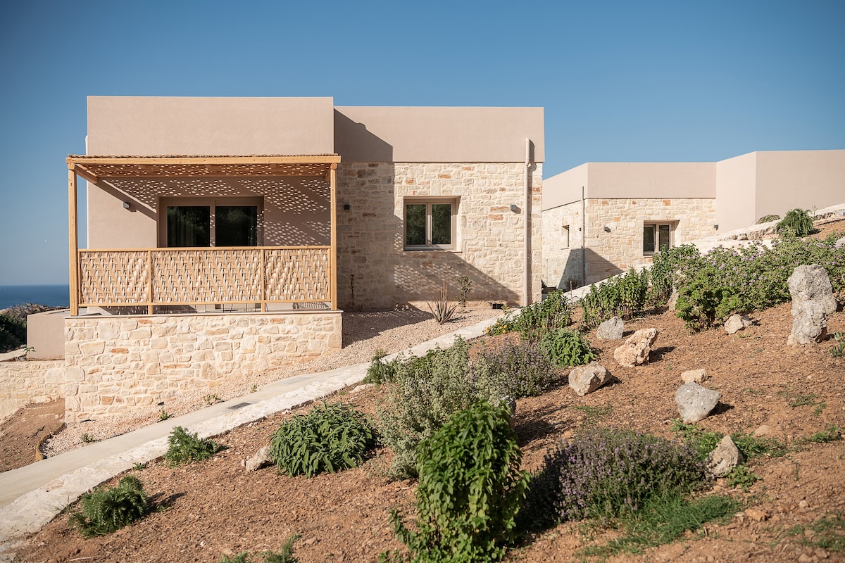A private home available for guests in search of a tranquil place to relax and reconnect with the core elements of nature. Set in a simple and natural environment overlooking the sea, our Zen House is eco-friendly and it carries a holistic approach integrated with traditional elements from the diverse personality of the island of Crete.