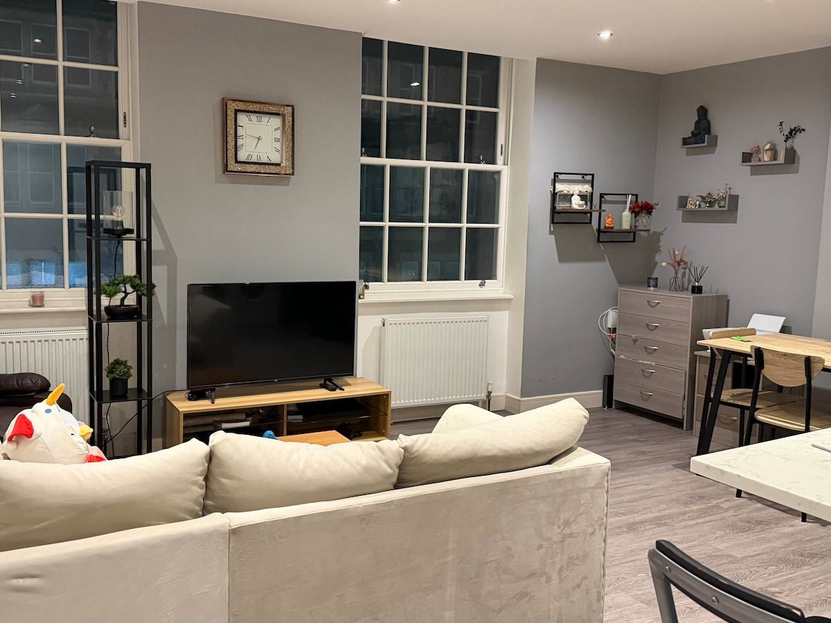 Lovely light & spacious one UK kingsize bed flat. In the heart of the city centre, close to shops & restaurants. Luton airport - 11 mins by train; by car 20/30mins. Flat includes large living area with kitchen & dining table, bathroom & bedroom with UK kingsize bed Free parking available in an allocated space in private car park 2 minutes away from the flat. PARKING IS STRICTLY BY ARRANGEMENT The flat is opposite a pub (closed as of Sept 2025). However we have very few reports of noise.