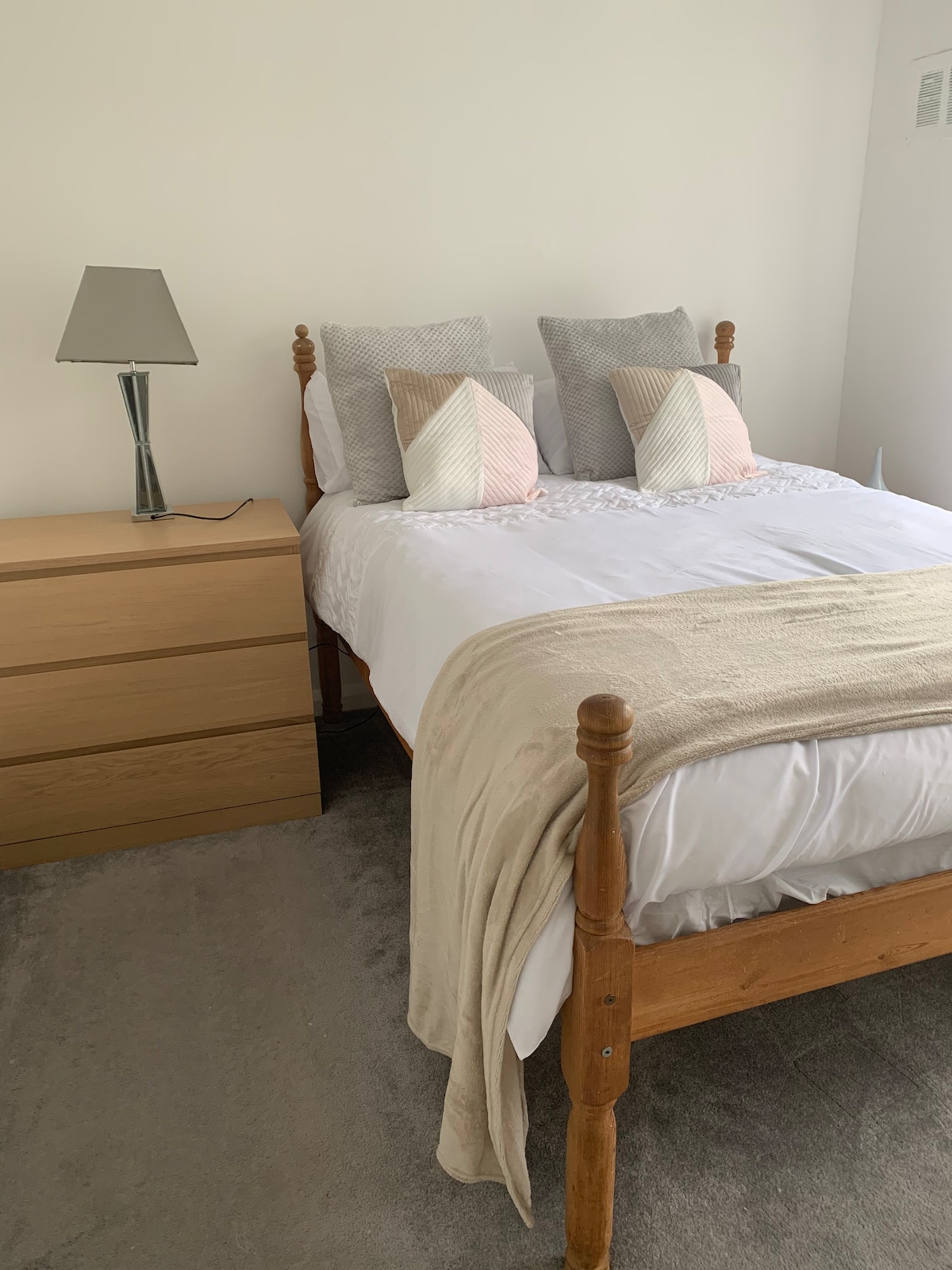 We’ve created a modern, hotel room-style bedroom for our guests. The room includes a comfortable double bed, a desk space to work, en-suite with new shower and full height wardrobe. It is a private room attached to house with a separate entrance. Please note we do not allow access to the rest of our house.