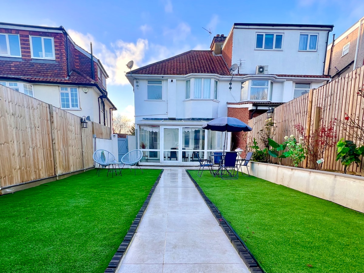 Bright and newly renovated 4-bedroom house in a quiet and safe area of Edgware. The home offers a bright living room with Smart TV, a fully equipped kitchen, fast Wi-Fi, private garden, and free street parking. In addition to the four bedrooms (there is a separate home gym room for guests to use during their stay) Just an 8-minute walk to shops,parks, restaurants and Edgware Station on the Northern Line, with easy access to central London. Ideal for work or leisure stays