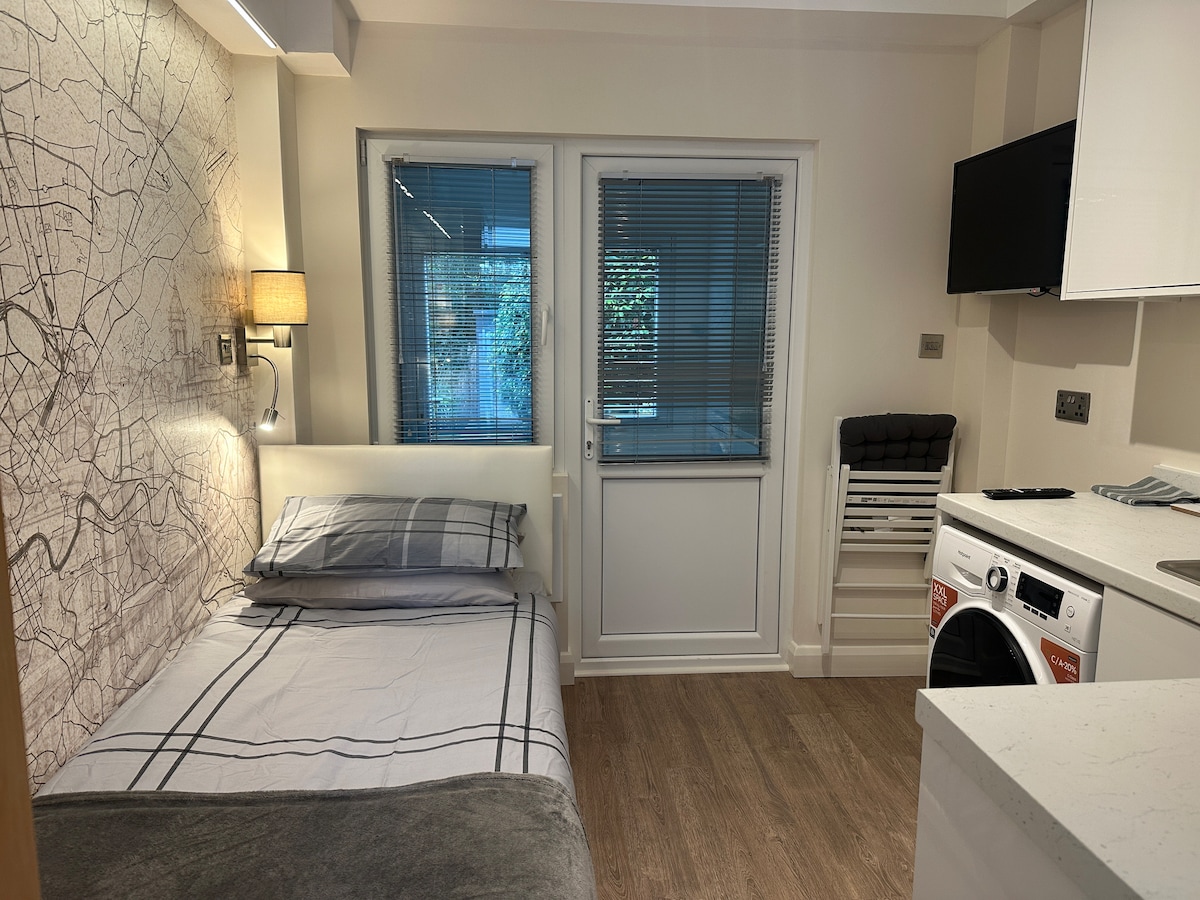 A magical, budget-friendly escape for Harry Potter fans. The room, newly adorned to a high standard, features a new bathroom, shower, small double bed, TV with Freeview, ironing facilities, a fridge, dining utilities, a fan, extra blankets, and pillows. Enjoy a light breakfast of fruit, pastry, and cereals. Daily cleaning and replenishing of amenities are included. The room has an en-suite and its own private entrance, separated from the main house for your privacy. 2/2