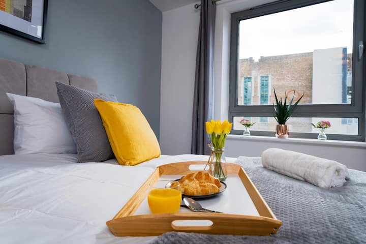 City 2Bed/2Bath Flat with FREE Wi-Fi & Parking