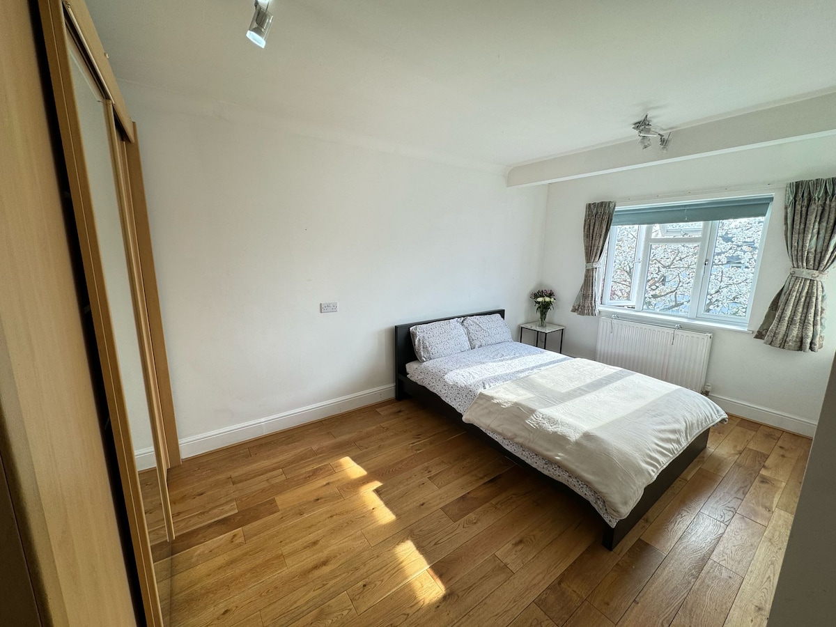 This is a self-contained, 1st floor apartment flat, with its own private staircase (14 stairs), doorway and entrance. 10min walk to Elstree SKY studios & Elstree and Borehamwood train station. Sleeping arrangements comprise a King-sized bed in the main bedroom area with superb comfortable mattress along with crisp and clean linen. The room also includes built in wardrobes with a chest of drawers, clothes hanger, a full-length mirror, 2 chairs and two bedside cabinets.