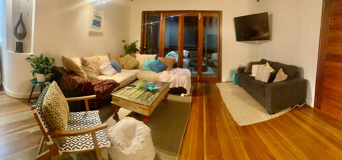 Thanks for considering K'gari Stay for your next island adventure! Our beautiful home, located at 843 Kingfisher Heights Drive in the peaceful neighborhood of Kingfisher Bay, offers breathtaking views and modern amenities for a truly relaxing stay. Designed by master builder Steve Bagnall, our home captures the essence of island living while providing all the comforts of modern living. Bushy's Hilltop can comfortably accommodate up to 12 guests with five spacious bedrooms.