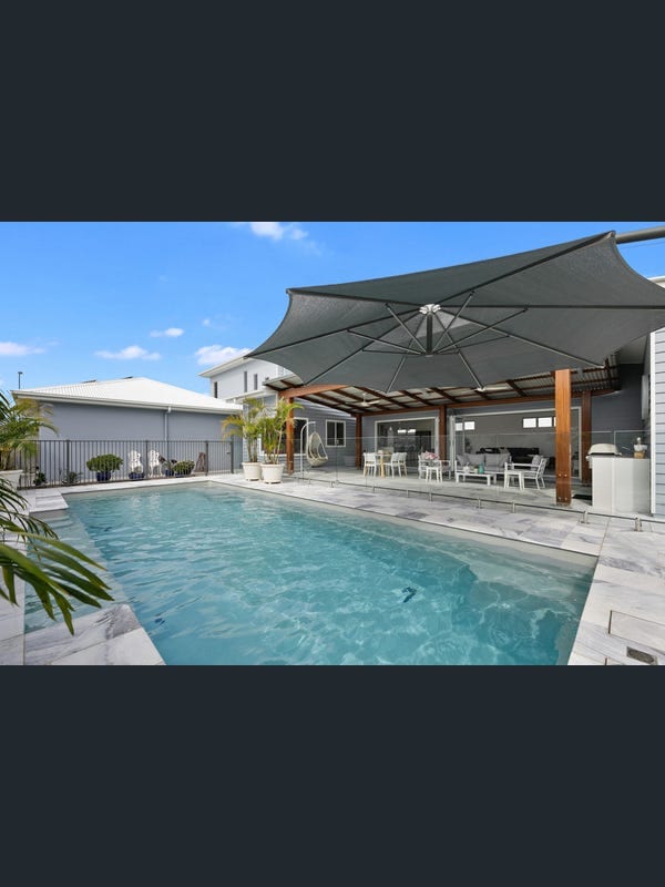 Luxury 6‑bedroom split‑level home with king, 4 queens & single room. Two modern bathrooms, spacious living areas on both levels, AC,full laundry, and kitchens upstairs & down. Sparkling pool, huge garden, entertaining deck with sunloungers. Secure, plenty of parking, and just a short walk to beaches & marina precinct. Perfect for families or groups, built for ultimate relaxation and comfort in a stunning location. Pet friendly.