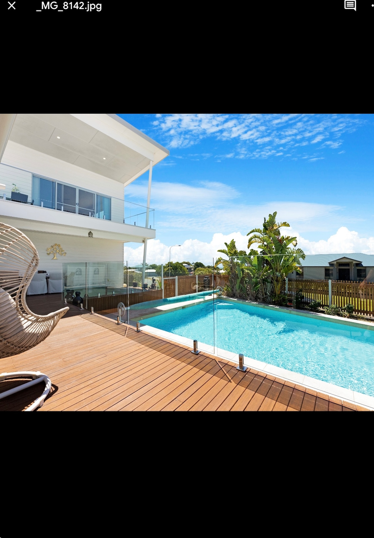 Our modern 2 storey home is located at Craignish a quieter, outer suburb of Hervey Bay. Our huge home is an entertainers dream inside and out. We offer full amenities , one bathroom that has a great hydrotherapy spa bath to de-stress in. Modern kitchen with many appliances. Cappachino machine for fresh coffee . A large dining table for any large families. Large bedrooms with comfortable beds and fresh linen supplied. A maintained pool, sun loungers, bbq and a great fire pit for colder nights.