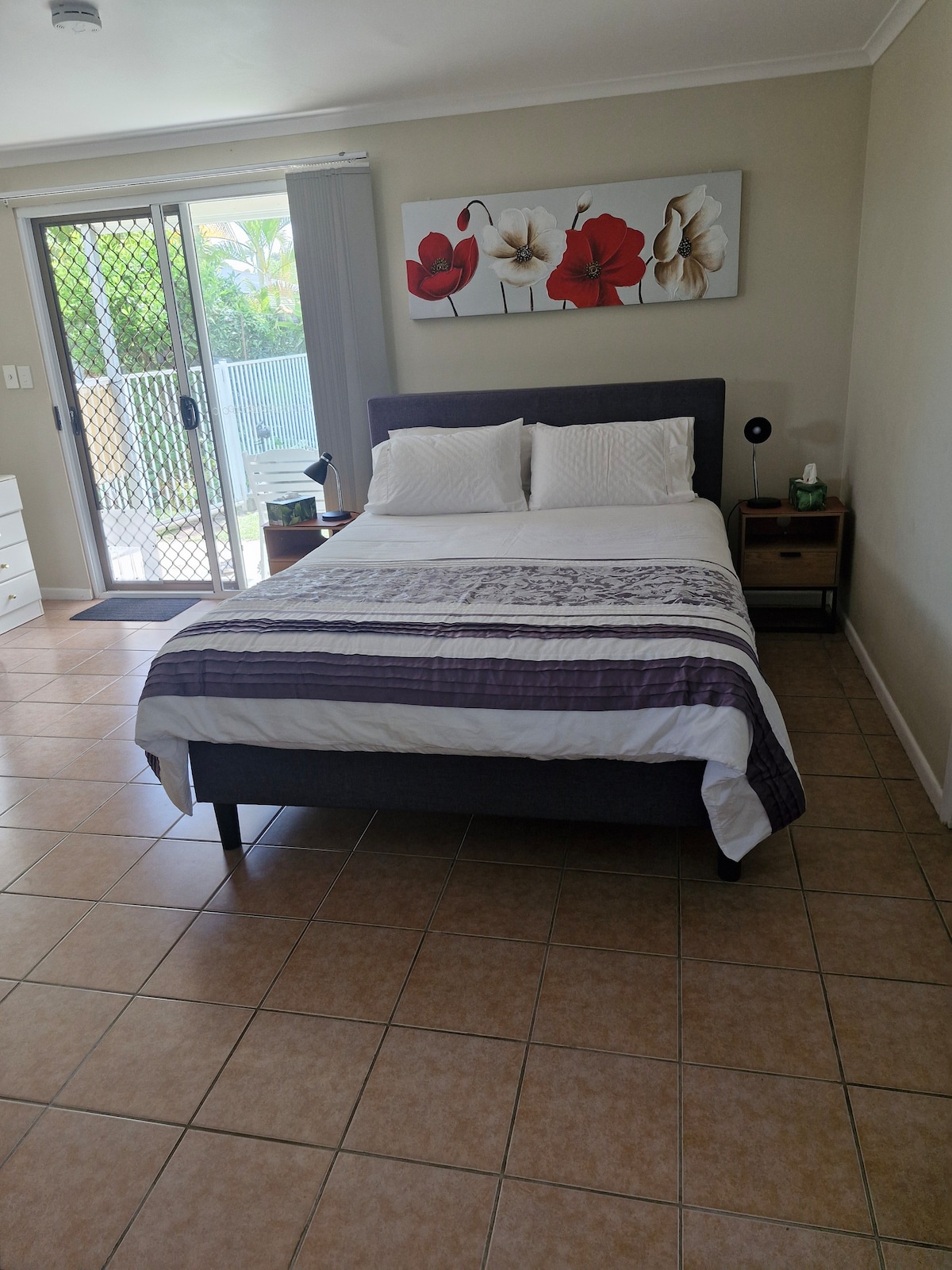 Welcome to our lovely, fully self -contained studio apartment. Our tropical sanctuary is fresh and clean with everything you need to enjoy a comfortable, relaxing stay. We have built our studio in the back yard of our home so that we can specifically host guests. We have a separate entrance for our Airbnb visitors so you can access your home away from home privately. Adjoining the room is a beautiful, tranquil deck area perfect for a relaxing cuppa or wine. There is no smoking allowed.