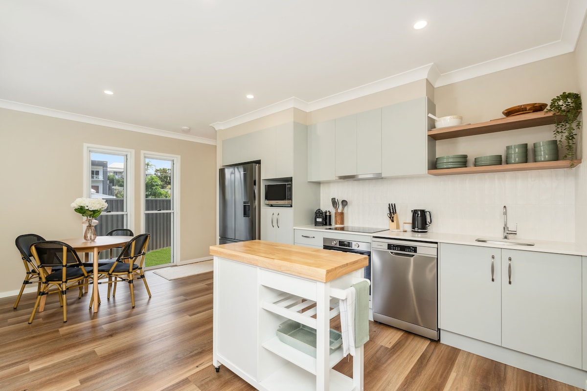 A newly renovated guest suite close to coastal walks, cycling tracks and a cafe. Great for a cosy get away. The guest suite is fully self-contained with a modern homely feel. The separate bedroom has a kingsize bed and opens up onto the lounge and dining areas with a view of the garden. Your hosts (Mark and Kathy) live on site; however, the guest suite is private, with its own entrance.