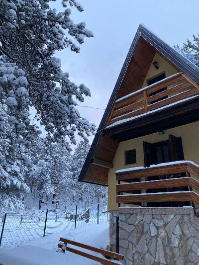 Pobjegnite u ovu planinsku oazu s očaravajućim pogledima, vanjskim jacuzzijem (40°C tokom cijele godine) i udobnim sadržajem. Opustite se na terasi s dva kamina, roštiljem i prostorom za jelo, ili uživajte u unutrašnjem sadržaju poput projektora za filmove, surround zvucnici, PlayStation VR-a i društvenih igara. Opremljena kuhinja i inverter klima osiguravaju udobnost tokom cijele godine. Savršen za miran odmor, ovaj šarmantni dom nudi sve što vam je potrebno da se opustite i napunite baterije!