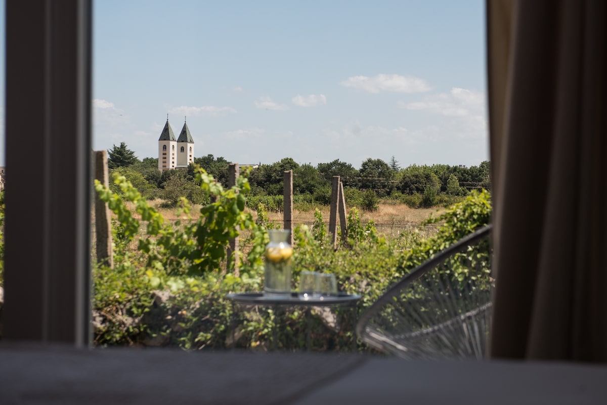 Nestled in the heart of nature and surrounded by lush vineyards, Villa Silente offers four elegantly designed apartments for guests seeking peace, silence, and the authentic spirit of Međugorje. Whether you’re visiting for reflection, rest, or exploration, this serene retreat invites you to relax and reconnect with what matters most. Enjoy the quiet beauty, scenic views, and warm hospitality.