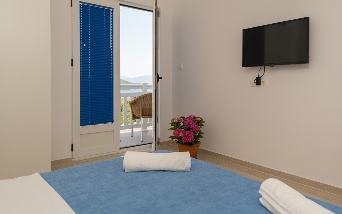 Bačić客房-带阳台和海景的双人房