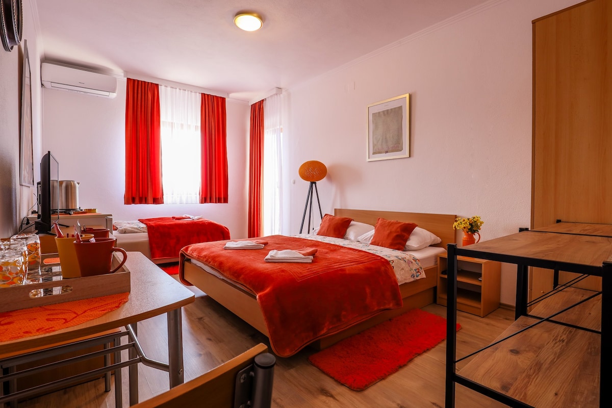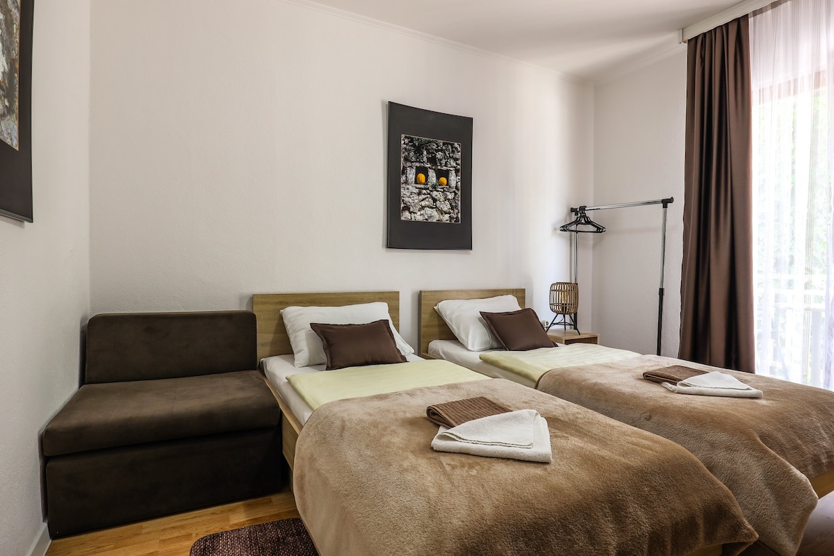 New room for two guests, couples or friends. Room is equipted with cable TV, air condition, wi-fi, bathroom. There is a parking and garage for free. You welcome and have a nice time in Trebinje!!!