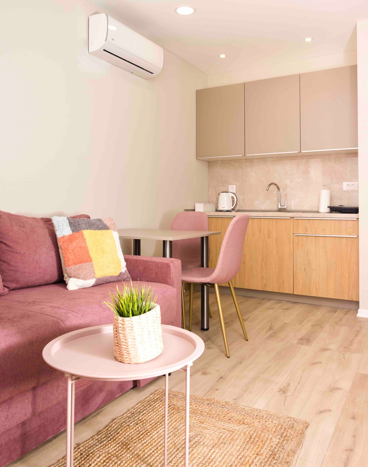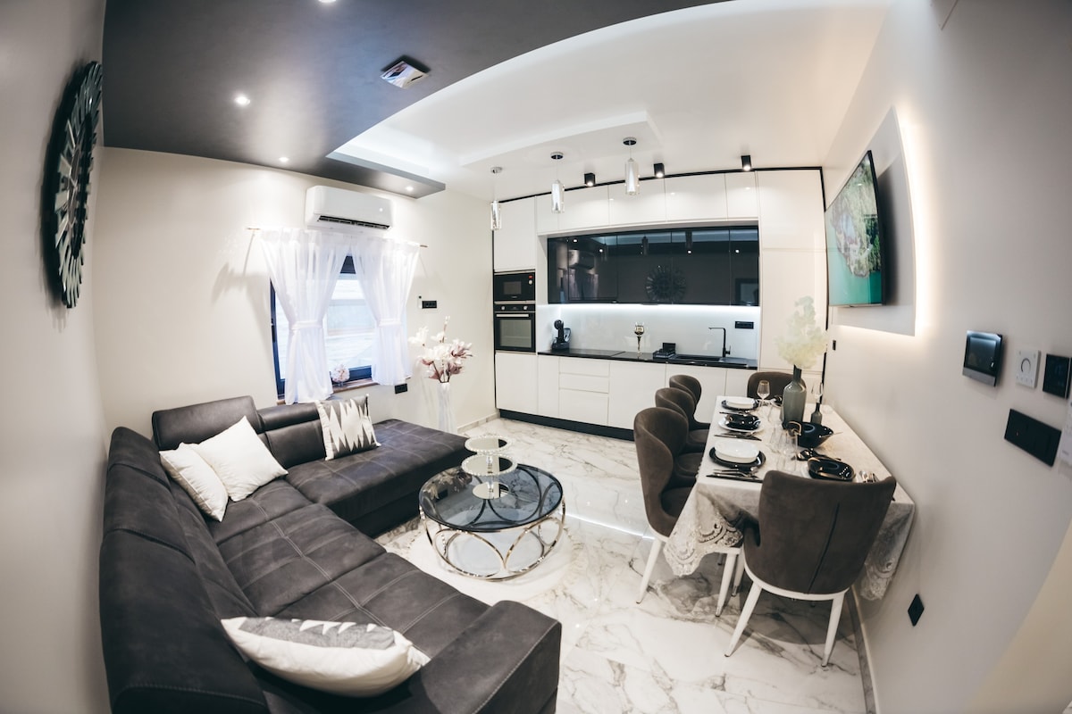 Ovaj jedinstveni smještaj uređen je u nesvakidašnjem stilu, sa pažljivo odabranim detaljima. Potpuno nov apartman je u cjelosti opremljen udobnim namještajem, super prostranom, modernom kuhinjom sa svim elementima, te kraljevskim krevetom za garantiran odmor. Ugođaj ce upotpuniti dva TV velikog ekrana, aparat za espresso kafu, Wifi velike brzine, te EON aplikacija sa preko 200 TV kanala. Gostima je na raspolaganju garaža za automobil u objektu, ali i javni prevoz u neposrednoj blizini.