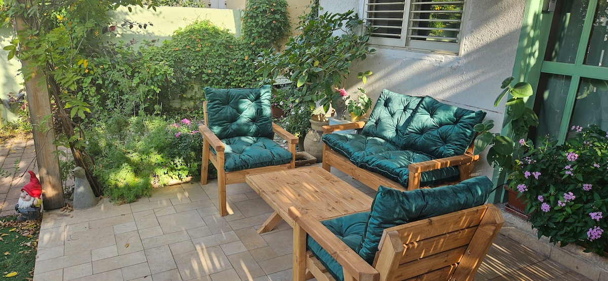 A lovely garden studio in the heart of green Herzliya. Cosy and intimate, the studio is located in the beautiful back yard of our house, in a separated area. The newly renovated studio offers a lovely outside space where you can relax and have coffee in the morning. It has a fully equipped kitchen, a smart TV, Wi-Fi and all the amenities. Located in a quiet neighbourhood, the studio is a few minutes walk from the town's centre which has cafes and shops. *In the garden, there is a shelter.