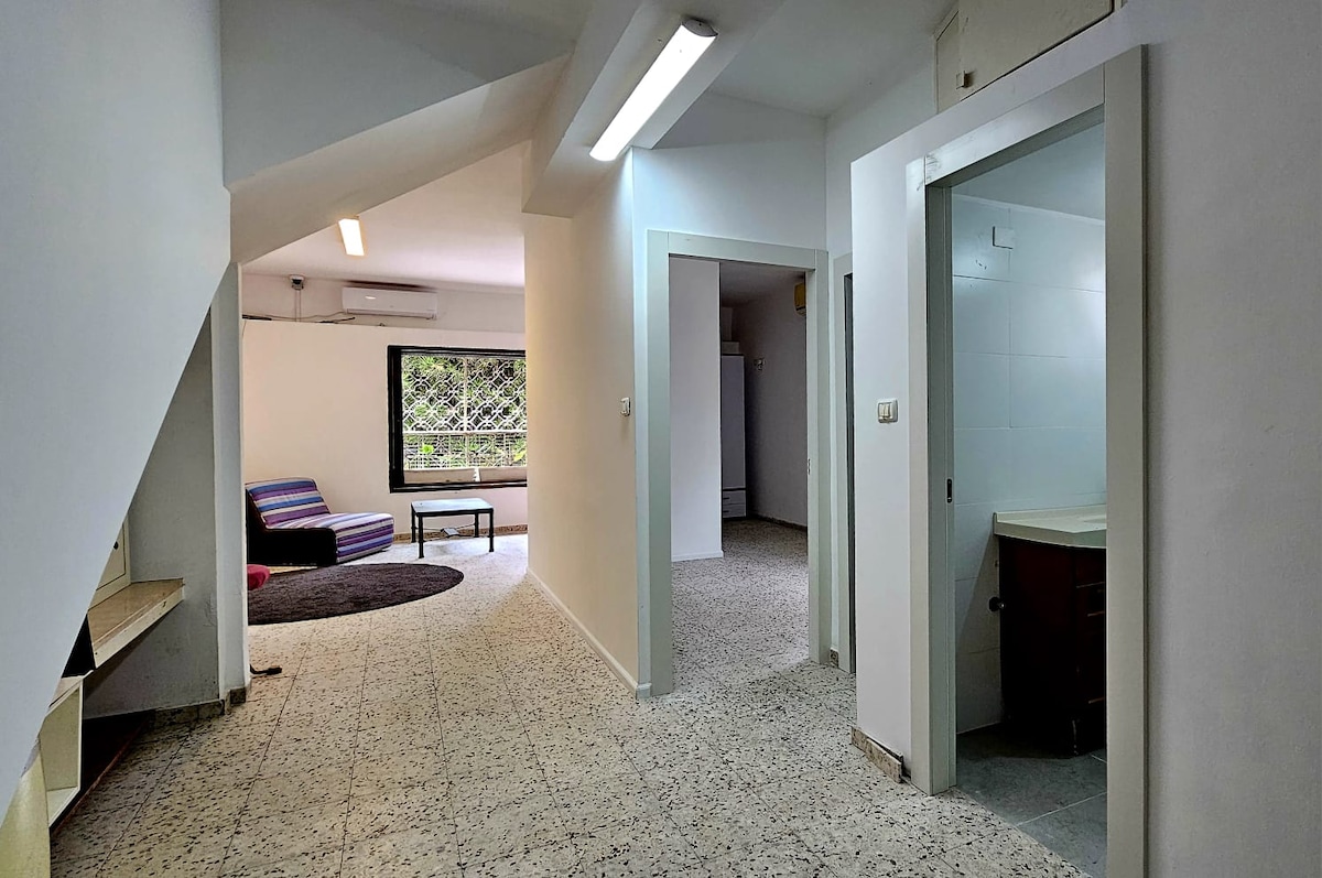 Quiet and cozy two Room flat with A small front yard and private parking (Locked with electric gate) The flat is fully furnished with a new comfortable queen size bed + 2 Sofas which can be opened to 1 double bed&2 single beds! Ethernet + WiFi connection, smart TV, channels app (NextTV) & Netflix. 5 minutes walk from a local Supermarket. Bus stop 30 meters away to Herzliya train station\city center\IDC private college.