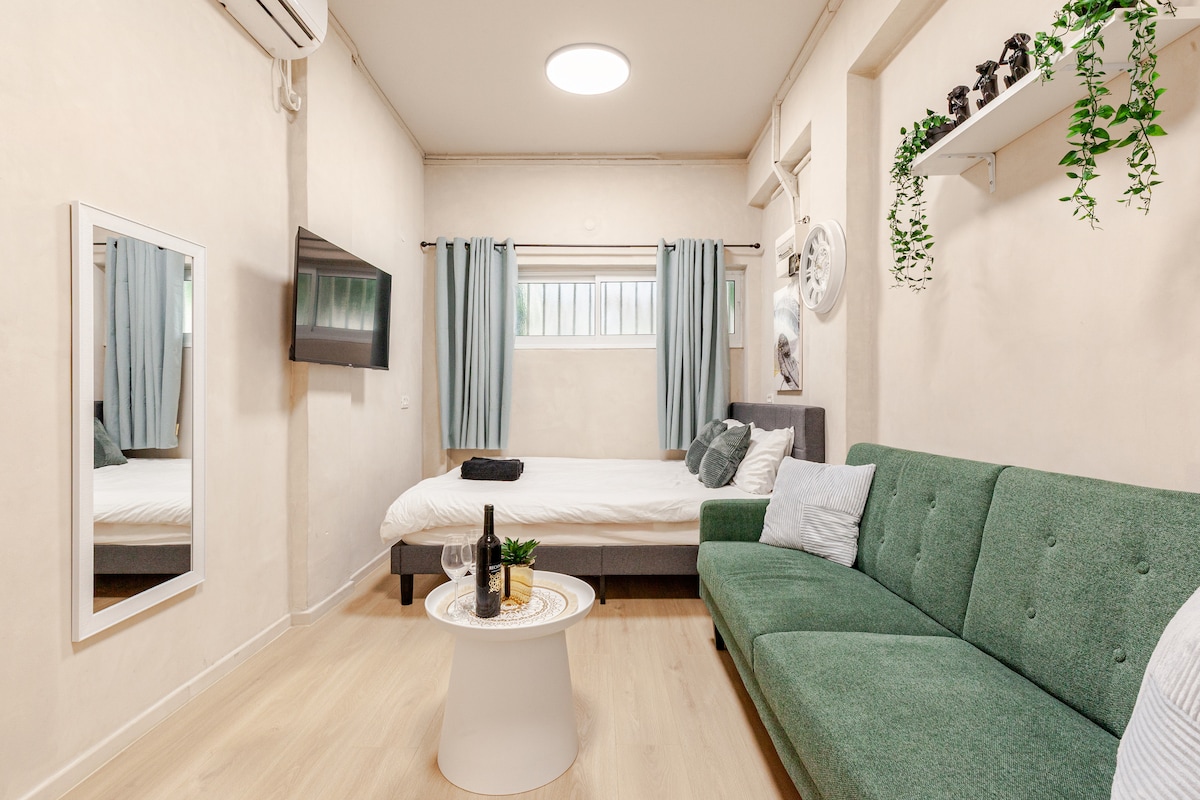 Cozy and stylish studio in the heart of Tel Aviv, located on vibrant Ben Yehuda St. Just steps from the beach, Dizengoff, and all the city’s top attractions. Within walking distance to cafés, restaurants, bars, gyms, art galleries, supermarkets, salons, pharmacies, and more. Tel Aviv Port and major shopping malls are close by, with easy access to all transport. Perfect for couples or solo travelers looking to relax, explore, and experience Tel Aviv’s lively vibe day and night.