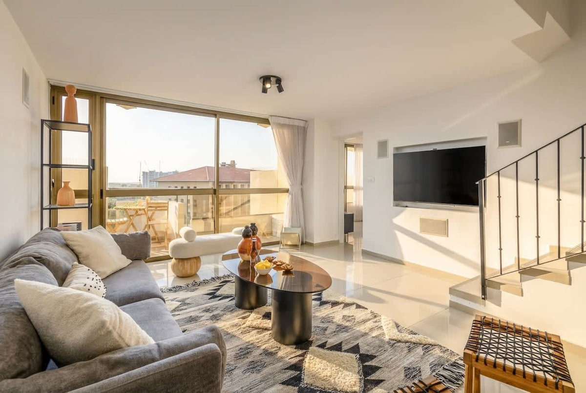 Welcome to the prestigious duplex in the heart of Tel Aviv. We promise, a perfect vacation at the highest level. The apartment is large and very spacious, 90 meters, 2 floors. Breathtaking view from the windows in the living room to the skyscrapers of Tel Aviv. The apartment is very clean and tidy, at the highest standards. Central location: 7 minute walk from the beach. Near supermarkets, bars, restaurants, cafes.