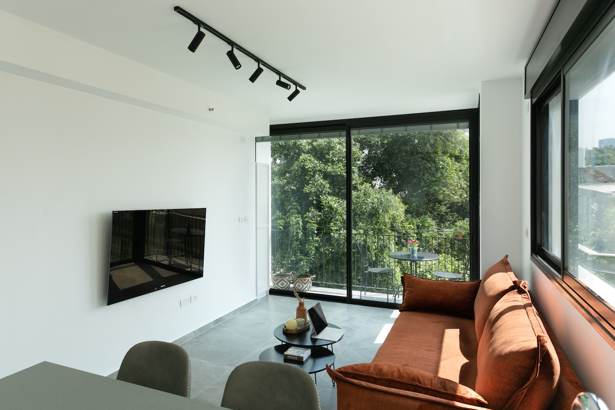 Modern & Quiet Oasis in Central Tel Aviv Relax in this new designer apartment (4th floor, elevator). A perfect mix of elegance and comfort in a central yet very quiet location. Layout: Bright living room (sofa bed), full kitchen, cozy bedroom, modern bathroom, and balcony. Safety: Private shelter (Mamak) conveniently located on the same floor. Ideal for those seeking a stylish, detailed-oriented home to enjoy the city in total relaxation.
