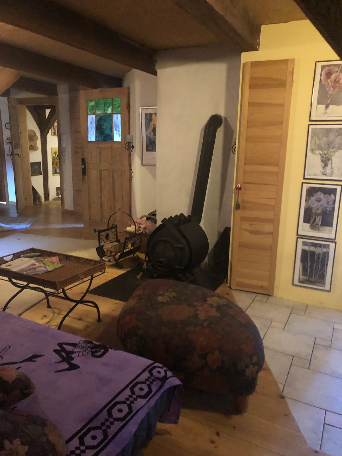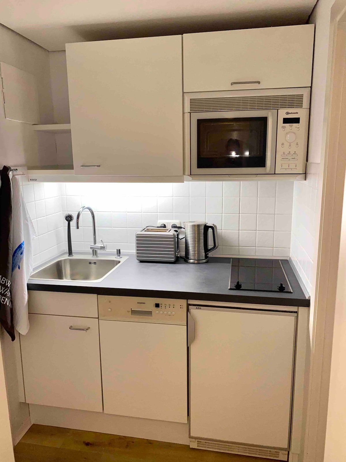 Die Einraumwohnung ähnelt einem langen Schlauch. Die Räumlichkeit befindet sich in unserem Anbau mit eigener Haustür (einem alten umgebauten Hühnerstall). Auf der anderen Seite der Wohnung befindet sich ein Fitnessraum der optional und nach Absprache genutzt werden kann. Auch unsere Terrasse + Garten ist über die Wohnung erreichbar. Auch diese darf nach Absprache gern mit genutzt werden, sofern gewünscht. Ansonsten eignet sich die zentrale Wohnung ideal für kurze Aufenthalte im Sommer.