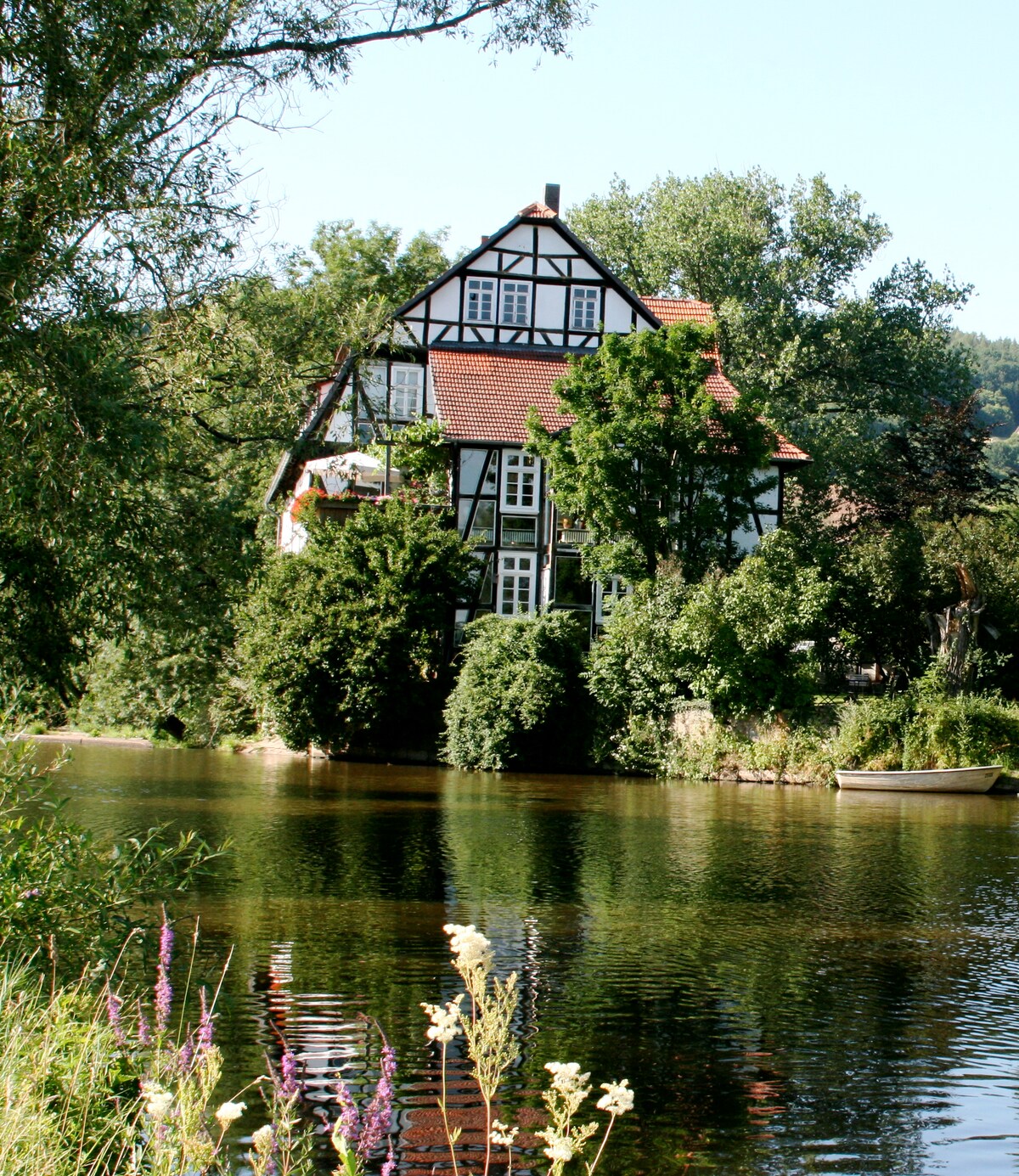Die frisch renovierte 125 m2 große Ferienwohnung besticht nicht nur durch ihre einmalige Lage direkt an der Fulda im nordhessischen Bergland. In der 400 Jahre alten Mühle wurde diese Wohnung mit viel Liebe eingerichtet. Sie verfügt über eine moderne offene Wohnküche mit anschliessendem Wohnbereich, in dem ein Kaminofen für angenehme Atmosphäre sorgt. Darüber hinaus finden Sie in der Wohnung zwei abgeschlossene Schlafzimmer und ein neu renoviertes Bad mit Sauna. Nachhaltiges Heizsystem