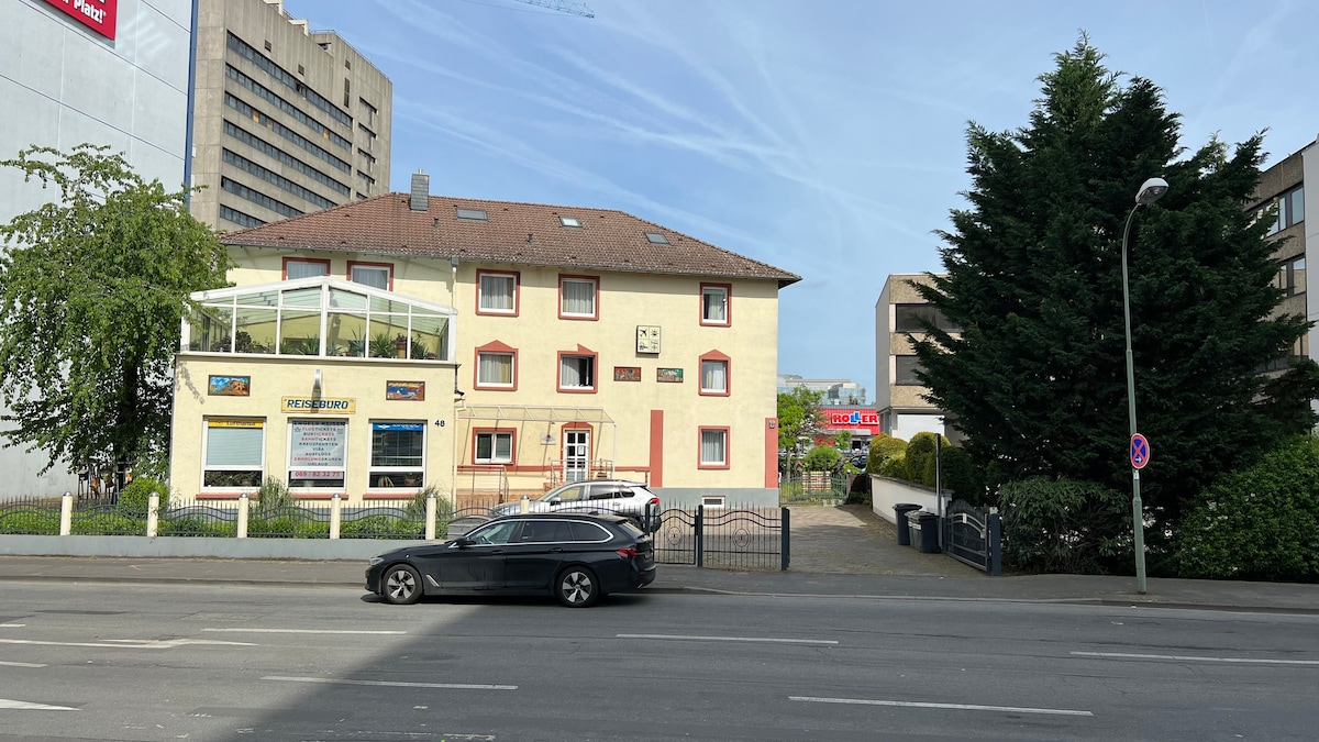 Hotel like room with comfortable double size bed (1.40mx2.00m). Fast access to subway lines (S-Bahn), autobahn, airport, fair and two city centers (Frankfurt & Offenbach).