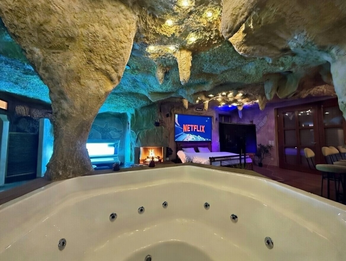 Private VIP Wellness Höhlen Suite Exklusives Spa-Erlebnis mit Whirlpool, Sauna, Solarium, Massage Liege und Eisdusche in einzigartiger Höhlenlandschaft. Kamin, Bar, voll ausgestattete Gastroküche, Beamer und hochwertige Musikanlage sorgen für Luxus & Entertainment. Separater Eingang und schallgedämmte Bauweise garantieren absolute Privatsphäre. Perfekt für besondere Auszeiten und unvergessliche Momente.