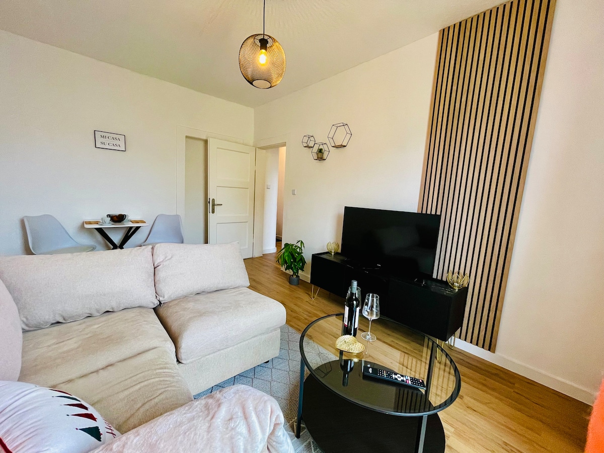 Diese stilvolle Unterkunft eignet sich perfekt für bis zu zwei Gäste. Die Wohnung hat einen eigenen Eingangsbereich und bietet auch noch einen schönen Außenbereich. Mit 78 Quadratmetern ist hier viel Platz für Erholung. Das Wellnessbad mit grosser Dusche und riesiger Badewanne lädt nach einem tollem Urlaubstag zum Relaxen ein. Für Unterhaltung sorgen je ein Fernseher im geschmackvoll eingerichtetem Wohnzimmer und im Schlafzimmer. Voll ausgestattete Küche, Geschirrspüler und Waschmaschine