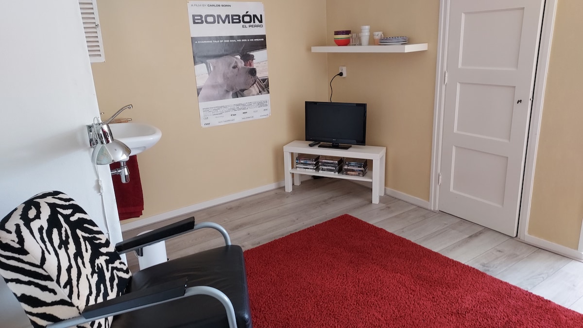 A neat single room. Breakfast: Crisp bread, crisp bakes, butter & sweet toppings are available, as well as coffee and tea supplies. Remarks: - Room is on the first floor; toilet downstairs. - Sink & towels in the room; shower downstairs. Please note the following travel times (by bus) from our B&B to Groningen: - From B&B to UMCG (hospital): 40 minutes By car it takes about 20 minutes to get to Groningen.