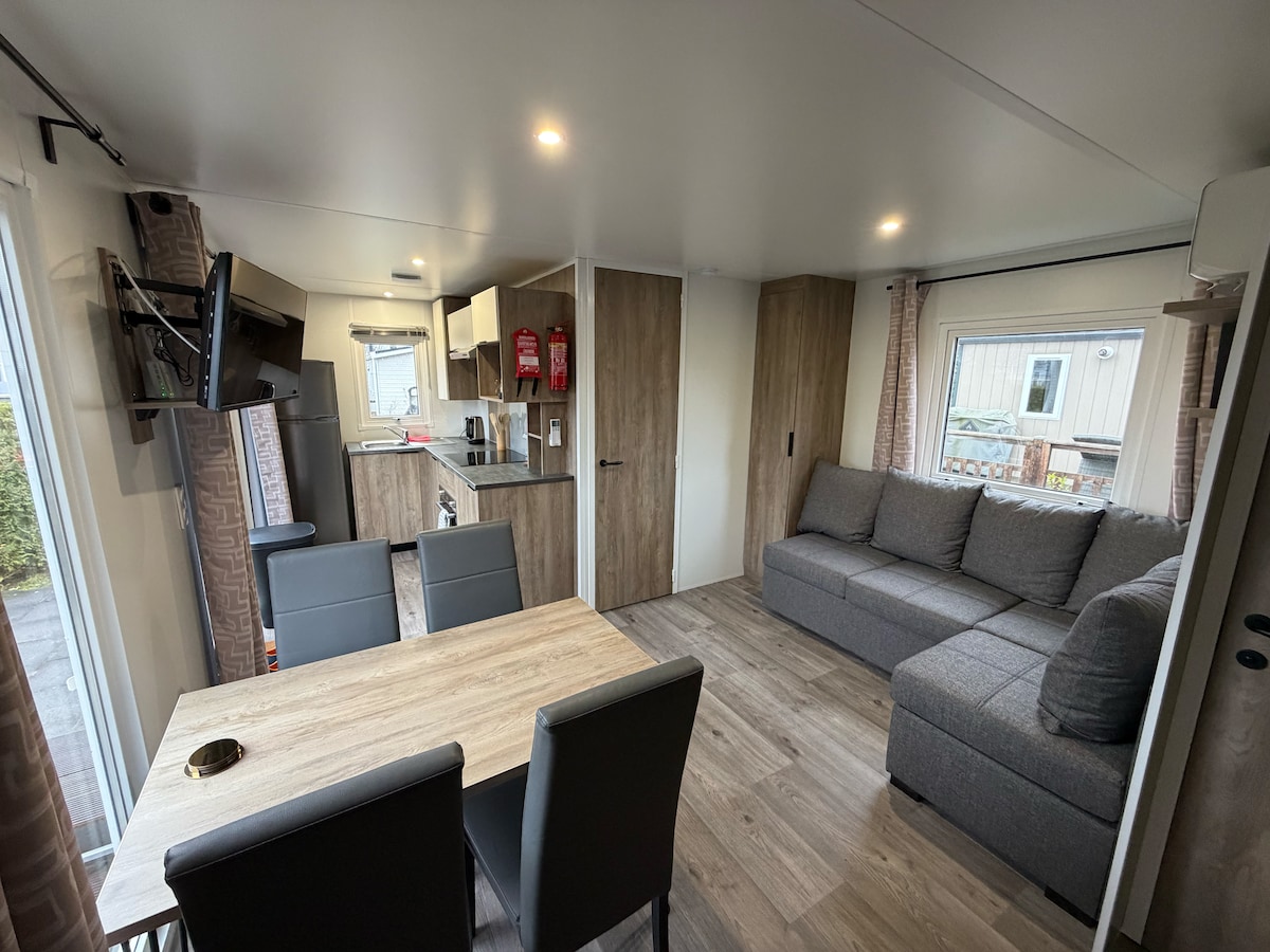 Ons chalet staat op een prachtige kindvriendelijke camping in natuurgebied Lauwersmeer. Vlakbij de oversteek naar Schiermonnikoog, de steden Groningen en Dokkum. Het is van alle gemakken voorzien met een eigen afgesloten tuin en patio, 5 minuten vanaf het zwemstrand. Het park heeft een restaurant, snackbar, fietsverhuur en veel speelgelegenheid voor kinderen, binnen en buiten. Vanuit de camping bent u meteen in het prachtige natuurgebied Lauwersmeer voor wandelingen en fietstochten.