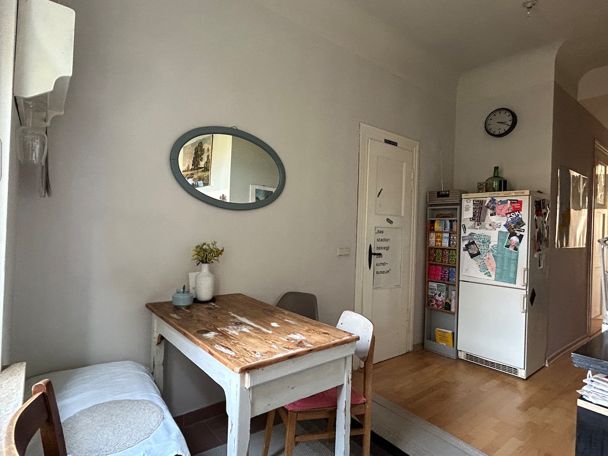 Chic apartment in a small town villa, surrounded by listed art nouveau villas. Only 5 min walk to the centre (German National Theatre). Small supermarket directly in the neighbourhood. Free parking possible on the street in front of the house.