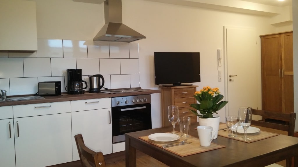 Das entzückende Apartment ist in einem neuwertigen Zustand und befindet sich im Erdgeschoss eines Wohnhauses mit insgesamt drei Etagen und acht Wohnungen. Der Wohn-/Schlafbereich ist äußerst gemütlich gestaltet. Die Küche ist voll ausgestattet und verfügt ebenfalls über eine Senseo. Bettwäsche und Handtücher werden gestellt. Der große LCD Fernseher so wie das freie WLAN sind besondere Ausstattungsmerkmale. Parkplätze sind ausreichend auf dem Grundstück oder an der Straße vorhanden.