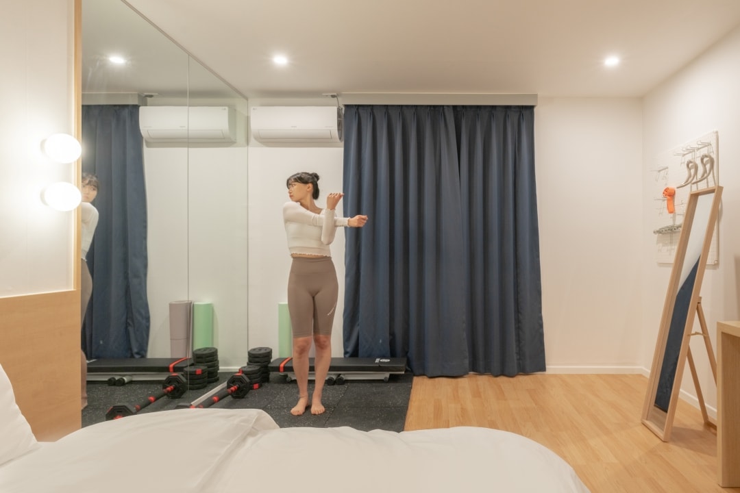 ์๋ ํธํ ์ ์ทจํฅ์ ๋ฐ๋ผ ์ผ์ด ํ์ํ ์๊ฐ์ ๋์ฑ ํน๋ณํ๊ฒ ํด์ค ๋ค์ํ ์ฝํ ์ธ ๋ฃธ์ด ์ค๋น๋์ด ์์ต๋๋ค. ๊ฐ์กฑ, ์ฐ์ธ, ๋๋ ์น๊ตฌ์ ํจ๊ป ์ทจํฅ์ ๋ฐ๋ผ ์ผ์ ์ฆ๊ธฐ๋ ํน๋ณํ ์ถ์ต์ ๊ฒฝํํด ๋ณด์ธ์. [์ฒดํฌ์ธ/์ฒดํฌ์์] ์ฃผ์ค: 16:00~13:00 ์ฃผ๋ง: 20:00~12:00 [๊ธฐ์ค์ธ์/์ต๋์ธ์] ๊ธฐ์ค 2์ธ/ ์ต๋ 2์ธ [๊ธธ ์๋ด] - ๋๋ณด ์ด์ฉ ์ ์ฒญ์ฃผ์์ฒญ12๋ถ ๋ฌด์ ์ฒ๊ฝ์ ์ 17๋ถ ๋ฌด์ฌ์ฒ์ฒด์ก๊ณต์ 17๋ถ ์ฒญ์ฃผ์ข ํฉ์ด๋์ฅ 19๋ถ - ์ฐจ๋ ์ด์ฉ ์ ์ฒญ์ฃผ์์ฒญ 5๋ถ ๋ฌด์ ์ฒ๊ฝ์ ์ 4๋ถ ๋ฌด์ฌ์ฒ์ฒด์ก๊ณต์ 4๋ถ ์ฒญ์ฃผ์ข ํฉ์ด๋์ฅ 6๋ถ ์ฐ์์ฐ 14๋ถ
