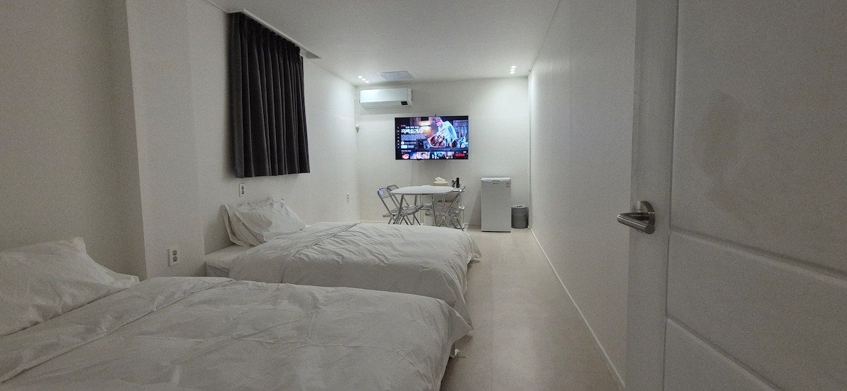 ์นจ๋๊ฐ ์๋ ๊น๋ํ 2์ธ์ค ํธ์ฌ์ด์ฆ ์นจ๋ 1๊ฐ๊ฐ ๋์ธ ์นจ๋ํ ๊ฐ์ค๋ก, ๋จ์ ํ๊ณ ์ค์ฉ์ ์ธ ๊ตฌ์ฑ์ ๊ฐ์ถ 2์ธ ์ ์ฉ ๊ฐ์ค์ ๋๋ค. ํผ์ ๋๋ ๋์ด ์กฐ์ฉํ๊ฒ ๋จธ๋ฌด๋ฅด๊ธฐ ์ข์ ๊น๋ํ ๊ณต๊ฐ์ ์ฐพ๋ ๋ถ๋ค๊ป ์ถ์ฒ๋๋ฆฝ๋๋ค. ๊ฐ์ค ๊ตฌ์ฑ ๋ฐ ๋นํ - ํธ์ฌ์ด์ฆ ์นจ๋ 1 - ๋ฏธ๋ ๋์ฅ๊ณ - ์ฌ๋ TV - ๋ฌด์ ์์ดํ์ด - ์์ด์ปจ, ๊ฐ๋ณ ๋ณด์ผ๋ฌ - ์ ์ฉ ์์ค ๊ตฌ๋น โป ์ต๋ 2์ธ๊น์ง ์ด์ฉ ๊ฐ๋ฅํฉ๋๋ค.