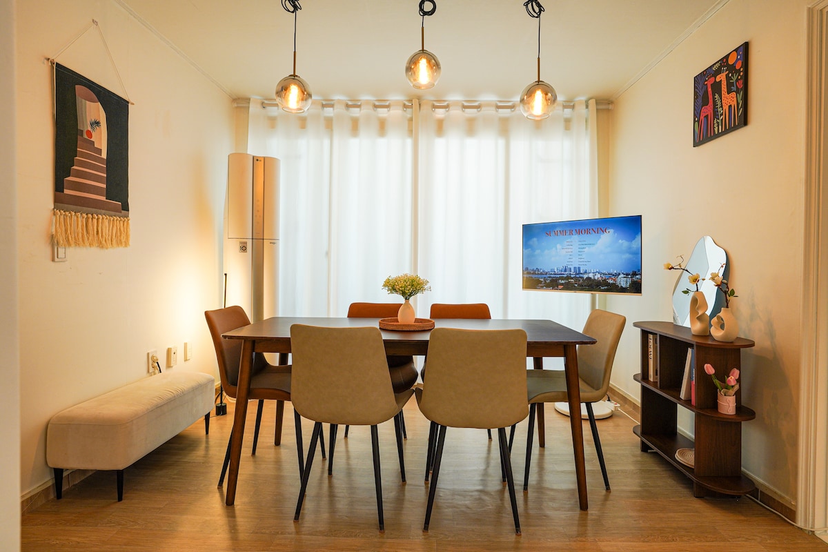 【3间客房+2个卫生间】宽敞的客厅和房间,距离上水站5分钟,靠近弘大
