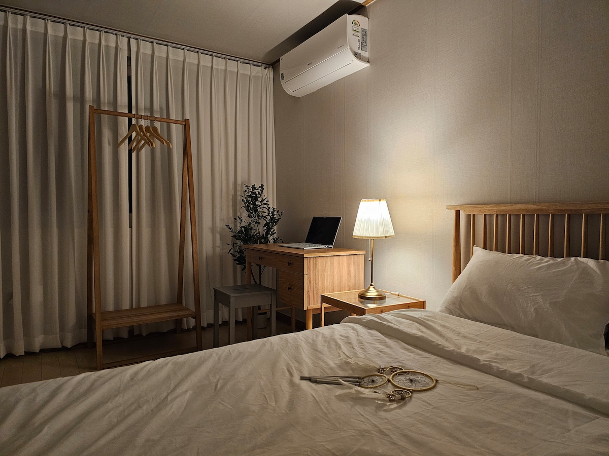 [SUSU HOUSE#3] 미니멀하고 따뜻한 이미지의 집입니다 여행객의 편안한 휴식공간이 되도록 잘 관리되고 있습니다 지하철과 버스정류장에서 가까운 위치로 주요관광지로 이동이 편리하고 장기숙박시 충분한 수납공간과 휴대용품이 완벽하게 준비되어 있습니다 침실과 거실의 공간분리로 더욱 쾌적하고 즐거운 시간을 보내세요 [메인공간] -테이블 -의자 -TV -Free wi-fi -Netflix 무료이용 [주방] -냉장고 -세탁기/건조기 -전자레인지 -전기포트/토스터기 -빨래건조대 -2인식기류 -조미료 -휴지통 [침실] -퀸사이즈침대 -2인침구 -옷장/옷걸이 [욕실] -수건 -화장지 -헤어용품/바디용품 -헤어드라이기 -비누/치약/칫솔 ☆주의사항☆ -예약인원외 출입금지 -객실 내 기물 및 시설물 훼손,오염,파손시 비용 청구 -오후10시이후 이웃에게 피해를 주는 행동 금지 -체크아웃전 설거지/쓰레기배출 🚭흡연금지-스프링쿨러가 작동됩니다 깨끗하게 사용해주세요