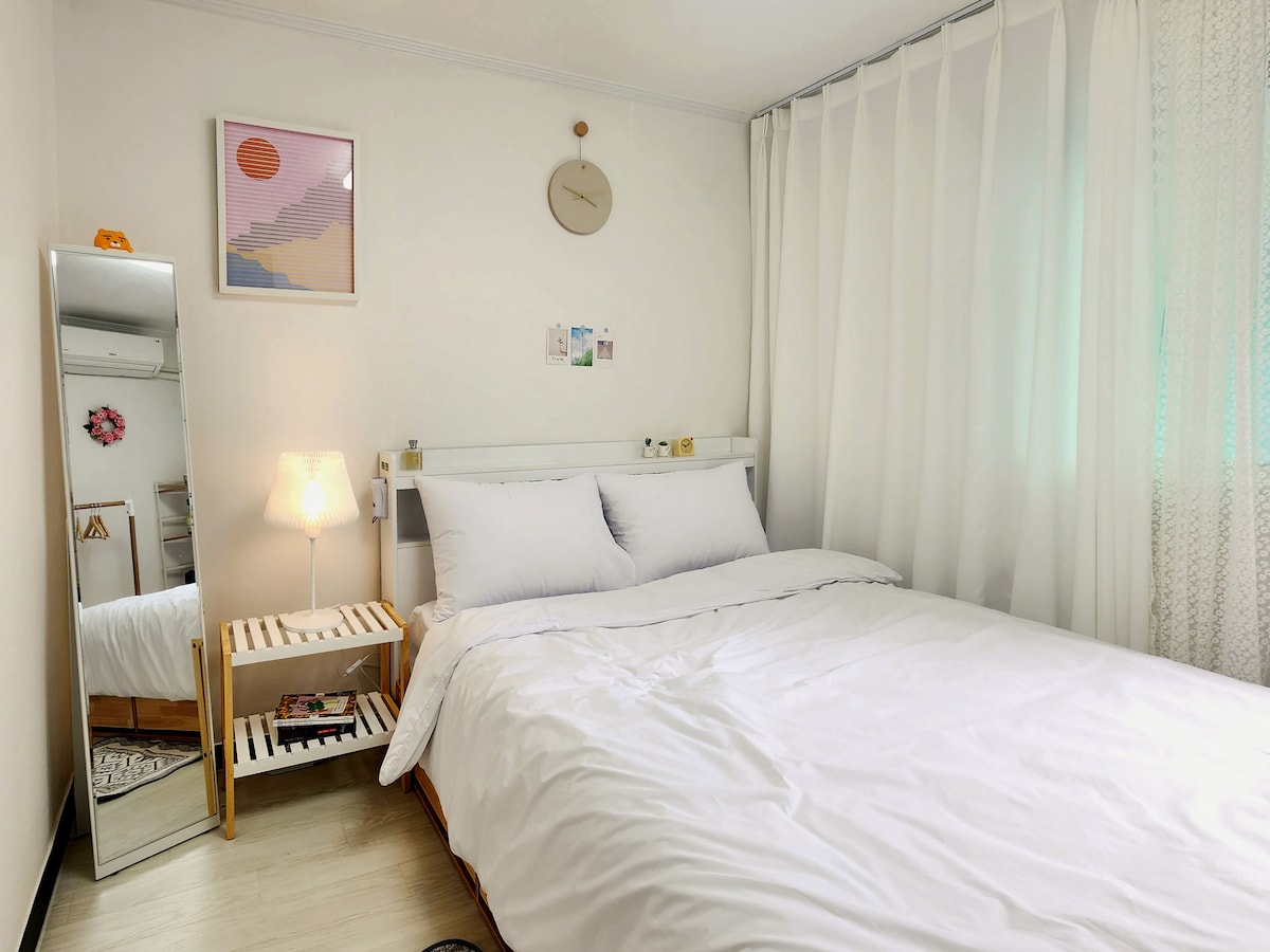 【特别优惠】新村站步行3分钟#弘大#明洞#合法住宿#机场巴士#奥利夫英#家庭#朋友#情侣#便利位置
