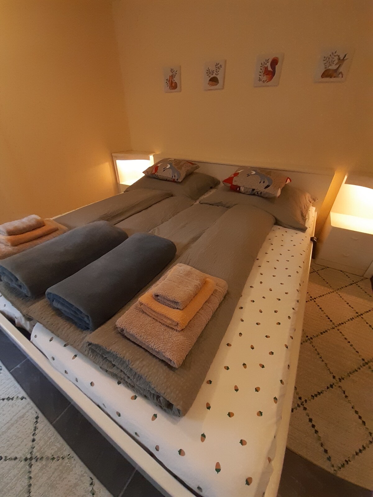 Join with your friends and family, and visit us in the woods, far from everything. You'll enjoy being together while nature, and the trees, which are in reach of your arm, they show you a different face every season. On summer it's cooler than in the hot city, the autumn is simply beautiful, and - surprise - the grey winter fog is even more beautiful by the side of the tiled stove. Go for a hike nearby, then cook a dinner together, and finish the day in the sauna!