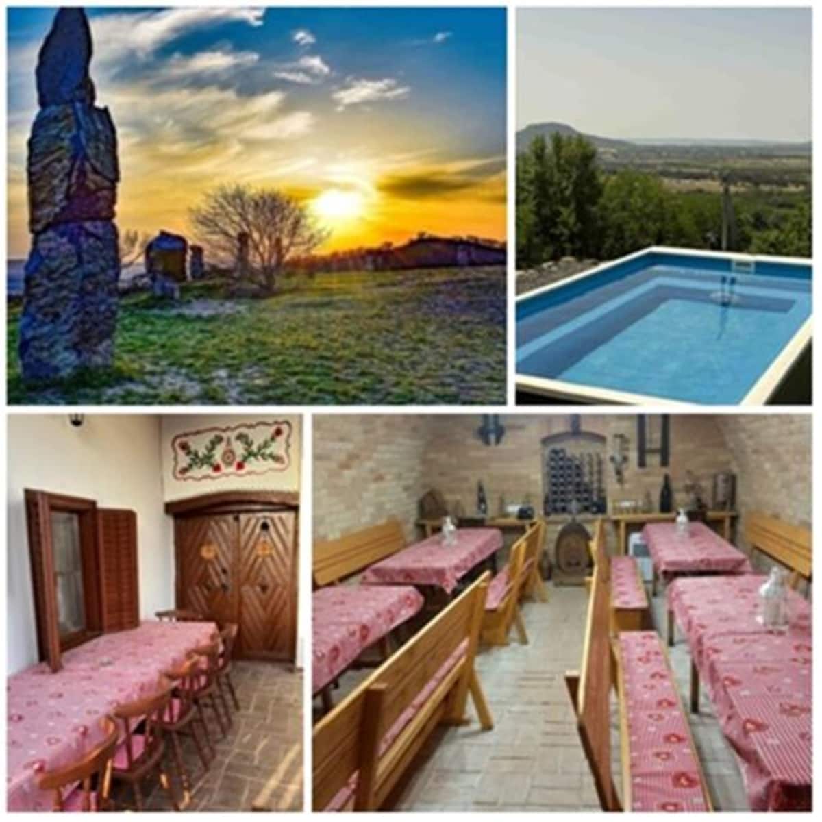 The guesthouse is located on the outskirt of Zalaszántó, on a vineyard hill with a panoramic view of the hills. It is close to Zalaszántó, but far from the noise of the cities, making it an ideal accommodation for our guests who want to retreat, relax or follow an active lifestyle. For those who are attracted by the diversity of the Keszthely Mountains and who love nature, this place can offer excellent relaxation and rejuvenation.