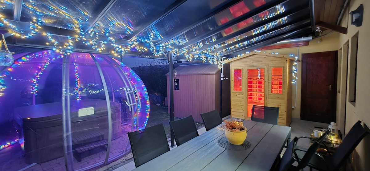 The building is located in a forest environment, with direct access to the forest. The covered terrace provides an excellent opportunity for spending time together. The private wellness with sauna, jacuzzi, relaxation area and kitchenette are available to guests in all seasons. The house is open to those who want to relax, unwind and have fun, but loud parties are not allowed! We look forward to welcoming you to our child-friendly accommodation.