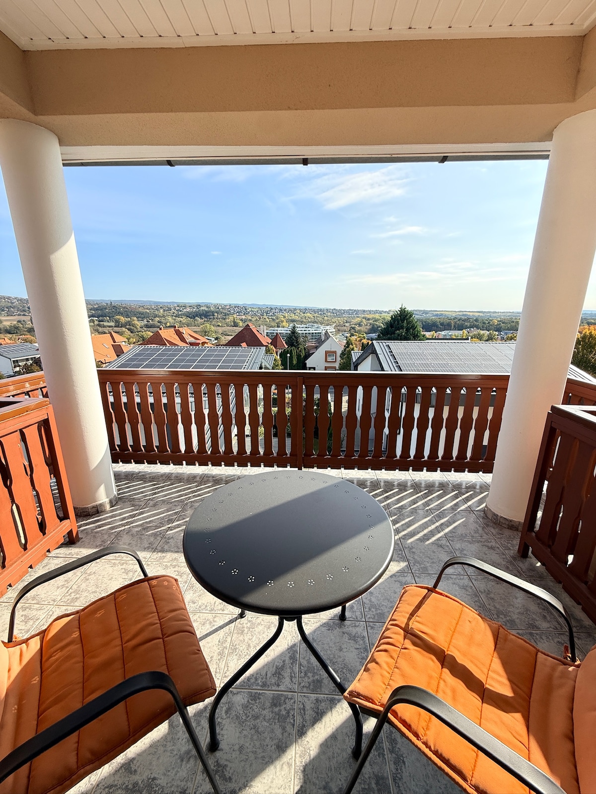 Our apartment is situated in Hévíz in a very peaceful surroundings, about 1000 m far away from the largest natural spa lake in the world and a short walking way from the vineyards. The flat comes with a cosy living-room with kitchen and dining area, a separated bedroom, as well as a bathroom with washing-machine. For babies we can offer a travel cot, for small kids a high chair. From the terrace there is a panoramic view of the town.