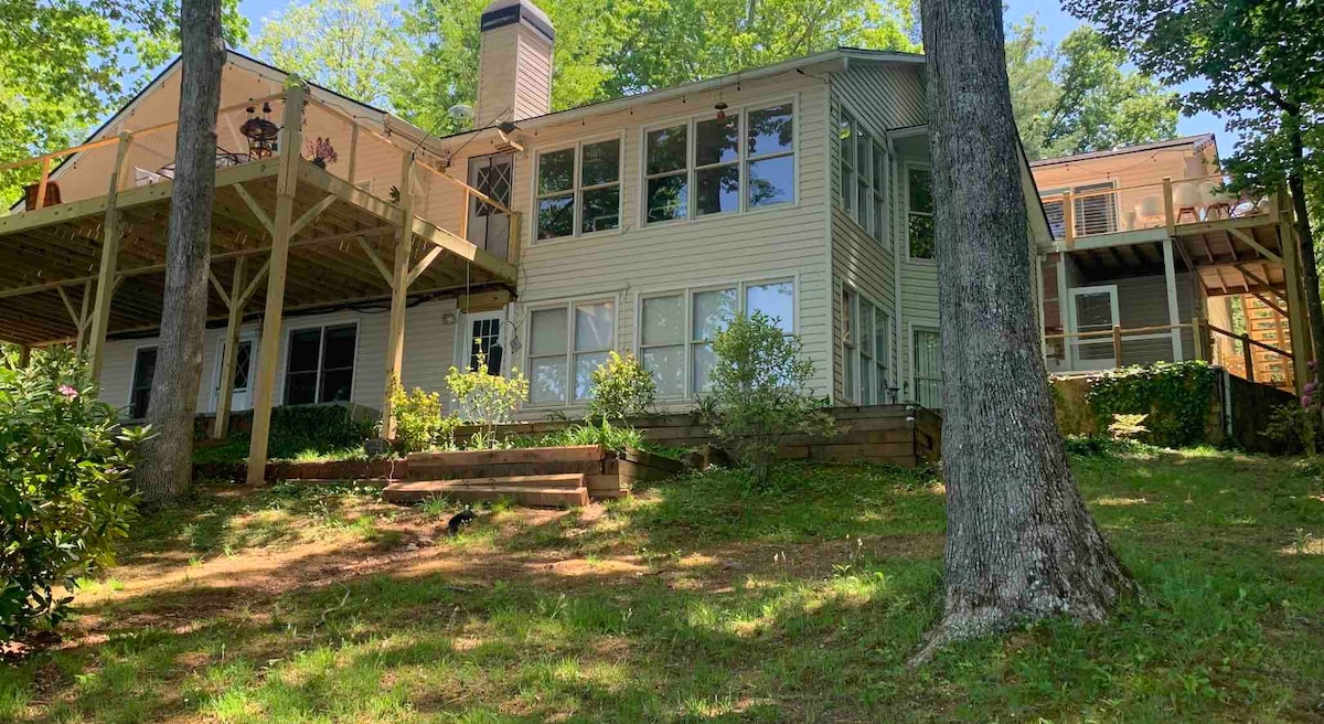 Lake front SunnySide Chalet is a perfect get away for couples or a small family. The yard is nice to play in and the docks are fun to jump off of. The chalet has most of everything you need, it is our home away from home! We are dog friendly, so the whole family can come! Hiawassee has much to offer- shopping, spas, movie theater, fine dining, water sports and Georgia Mountain Fairgrounds. Young Harris College is only 7 minutes away. Pickle ball courts and a free beach is only minutes away.