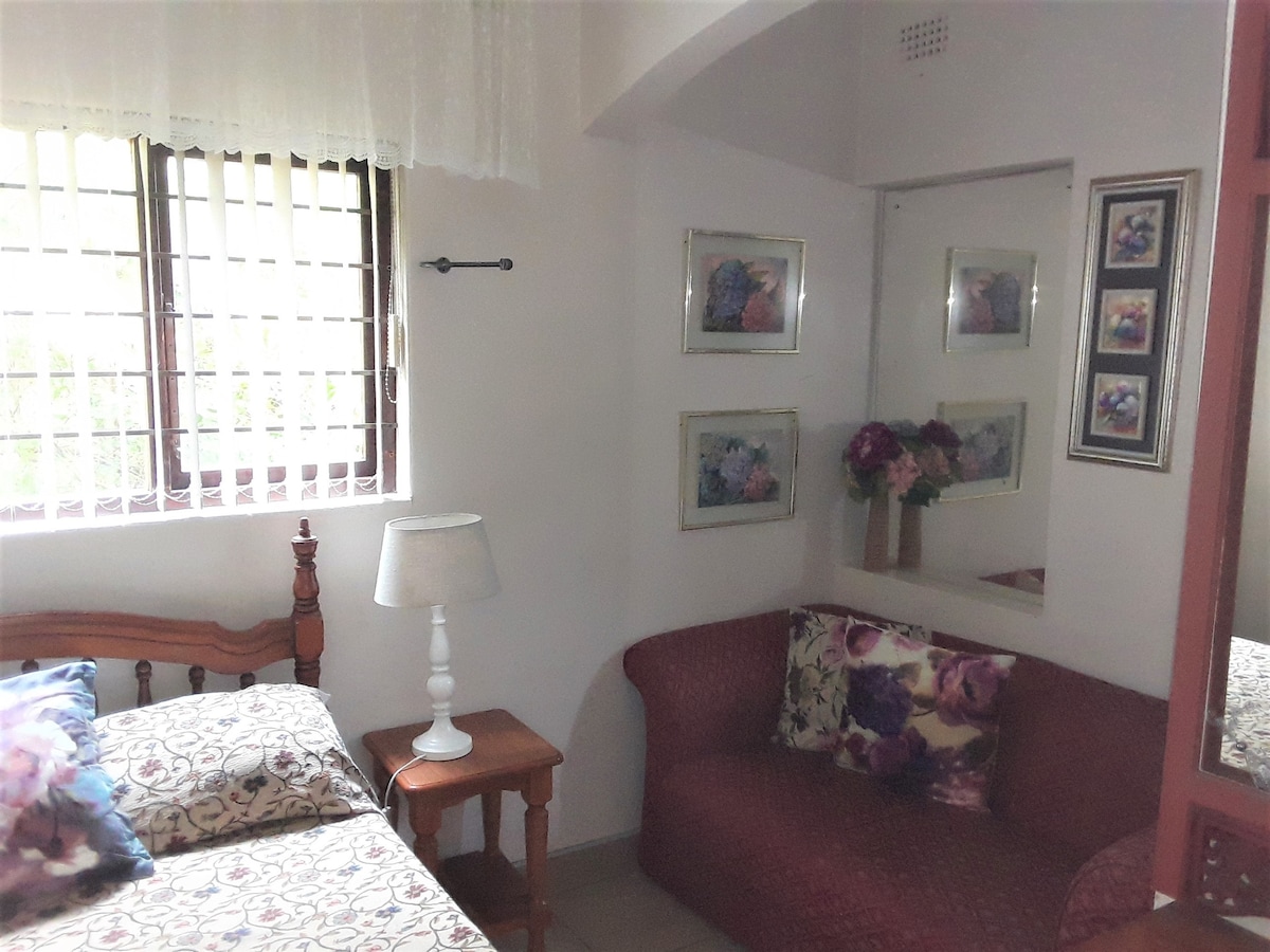 Cottage under our house with a small kitchen bedroom and bathroom. It is a self catering unit with bar fridge, micro wave oven and 2 plate stove with oven and kitchen cutlery and utensils. We have 2 small dogs a Yorkie and Jack Russell. There is a braai facility and a large swimming pool. Tv and wifi available. House is surrounded by a beautiful tropical garden and is quiet and peaceful. We are about 1000 metres from nearest beach. Open parking facility available. Infants and children allowed.