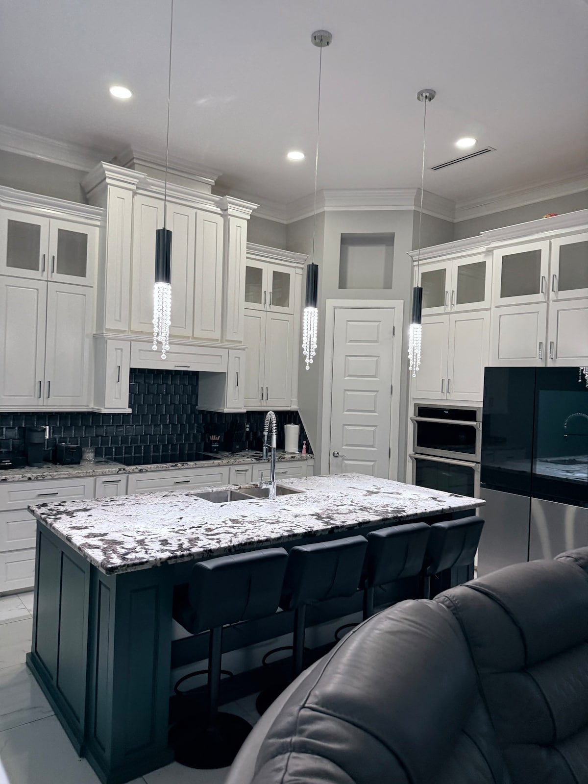 Gated community on a golf course with 24/7 security, full time staff, community pools, a hot tub, and gym. The home has 3 bedrooms: a king bedroom suite, guest room with a queen bed, and guest room with a full-size sofa bed and movie room setup. Full kitchen with a premium fridge, gas stove and convection oven, dining table, breakfast table, single car parking garage, washer/dryer & fiber WiFi. Government workers get the GSA rate with no hassle cancelation if duty orders change.