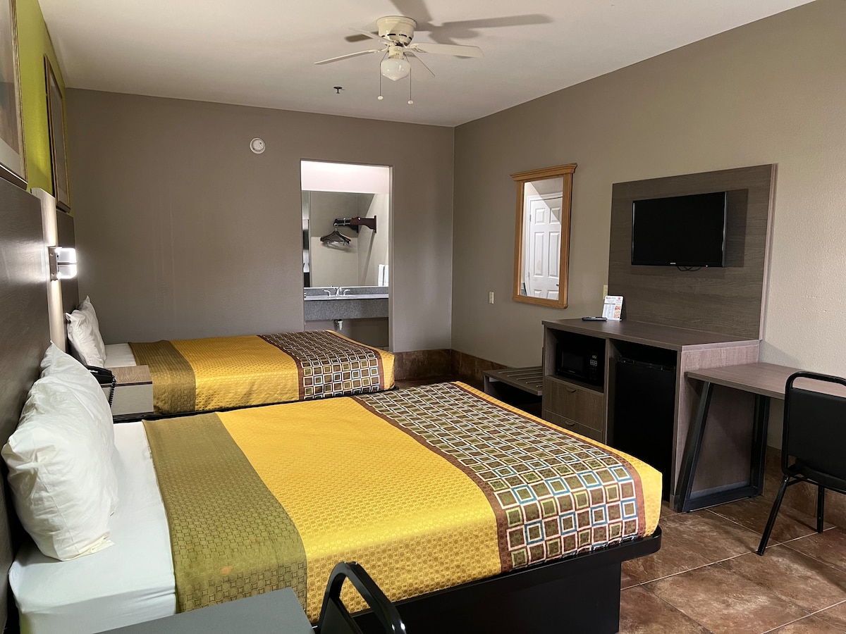 Family owned and operated. We just obtained the hotel so we working on rooms. Please support our small business. 24 hr front desk. 1 bed room. Any question please message us. We have a huge parking area for bigger vehicles..