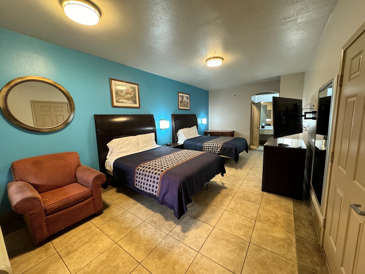 Family owned and operated. We just obtained the hotel so we working on rooms. Please support our small business. 24 hr front desk. 1 bed room. Any question please message us. We have a huge parking area for bigger vehicles..