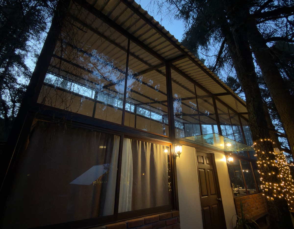 El bosque conteiner es un proyecto ecoturístico a solo 5 minutos del centro de Real del Monte 25 min. del Chico o Huasca. Con acogedora terraza con chimenea para disfrutar del bosque y el hermoso árbol que la abraza. El espacio es pequeño, pero cuenta con sala, baño completo, cocineta (frigobar, parrilla eléctrica, microondas, cafetera) wifi, tapanco con cama matrimonial. Agua caliente.