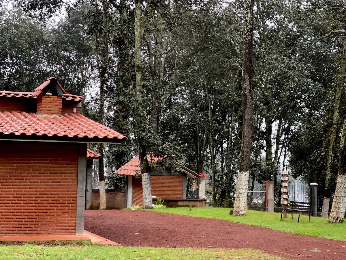Villa campestre para 9 personas, construida en madera con 135 m² cómodos y acogedores, ideal para familia, amigos o pareja. Rodeada de ocotes, encinos y mil plantas de colores, ofrece 2 recámaras con ropa de cama premium, baño amplio, cocina completa, comedor con vista al bosque y asador Weber. Zona segura con Wifi, pet friendly (costo extra). Es obligatorio cumplir el reglamento para garantizar seguridad, armonía y la mejor experiencia para todos.