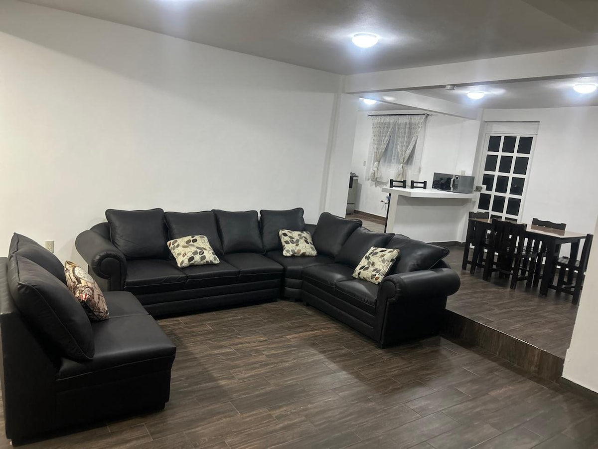 Cómodo, tranquilo y acogedor departamento a 3 cuadras del centro histórico de Tepeapulco y a 5 min. en auto de Cd. Sahagún. Nos encontramos en la vivienda anexa, de esta forma nos aseguramos de darte la mejor atención en tu estancia. Cuenta con cocina, baño completo, sala, una habitación con cama matrimonial y jardín compartido. A solo unos pasos podrás encontrar farmacias, super, tiendas.