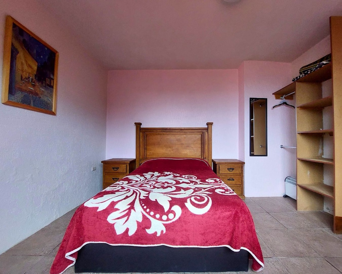 Departamento con terraza con vista panorámica de todo Pachuca. Cuenta con una cama matrimonial,TV/NETFLIX,baño completo, jacuzzi, estufa, barra amplia, clóset, wifi, estacionamiento privado, circuito de cámaras de vigilancia. Con acceso a una explanada y mirador. Ubicado a 5 minutos en coche del Reloj Monumental de Pachuca (centro) y a 15 minutos del pueblo mágico Real Del Monte, cerca de pueblos mágicos en coche, acceso a transporte publico a 3 minutos caminando hacia pueblos mágicos de Hidalgo