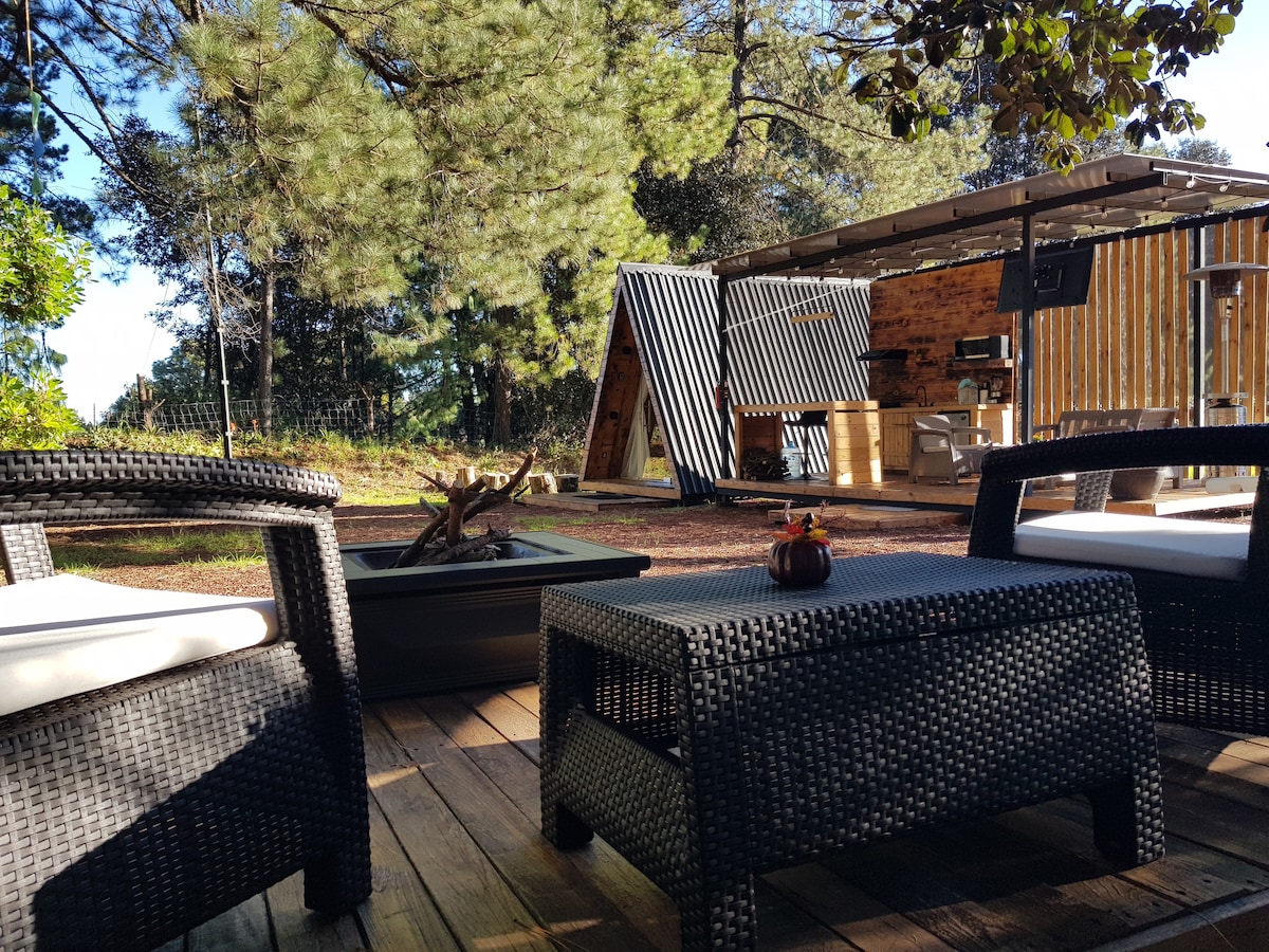 El bosque conteiner es un proyecto eco turístico de 6 cabañitas con terraza y una vista espectacular para disfrutar del amanecer o las estrellas. Senderos en el bosque área de asador fogata y picnic a solo 5 minutos del centro del Real, 25 min. de los pueblos mágicos de Mineral del chico o Huasca. Cabañita acogedora para disfrutar del bosque.